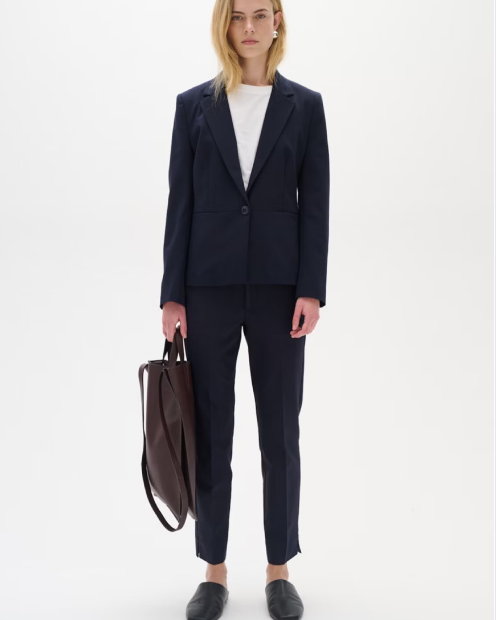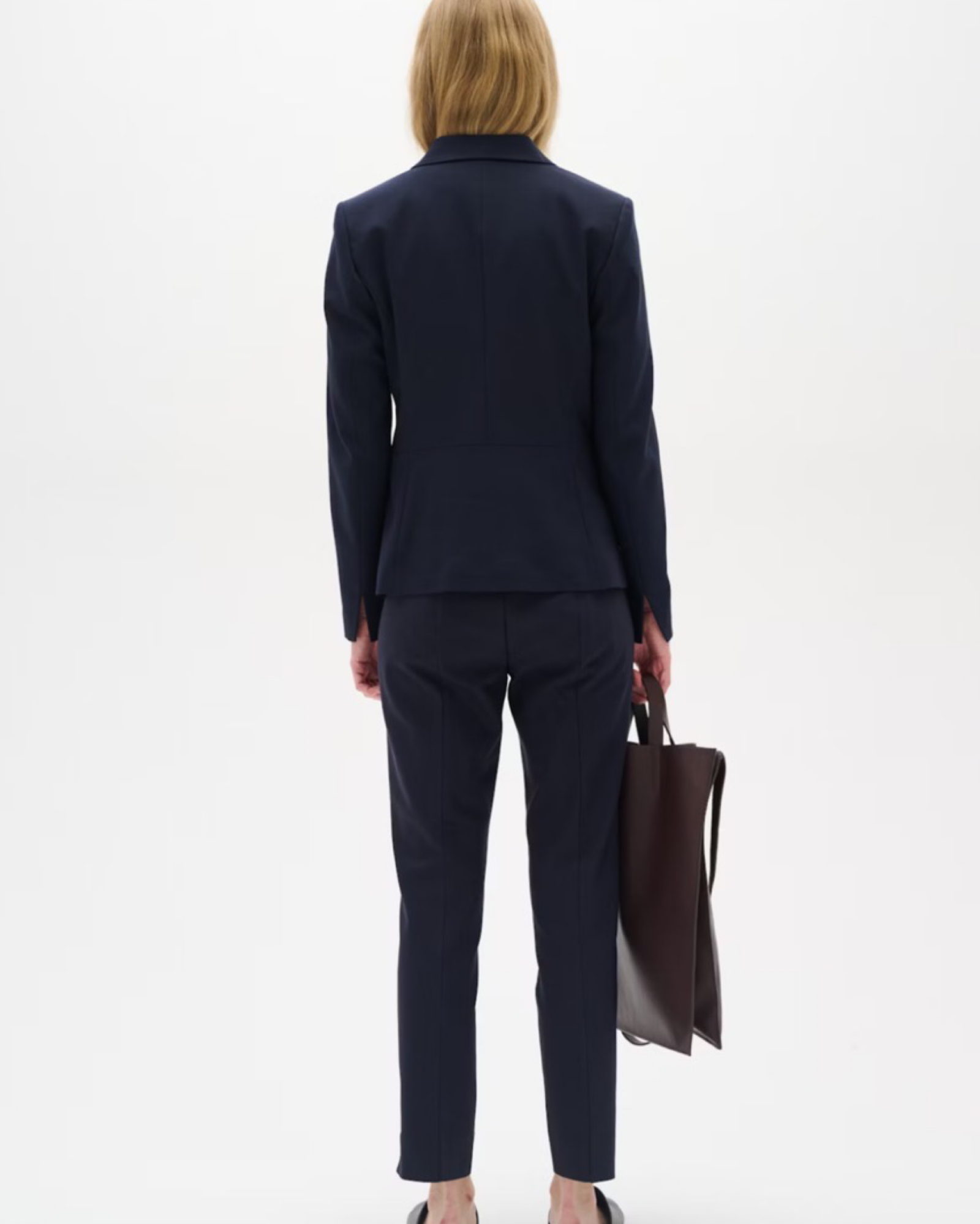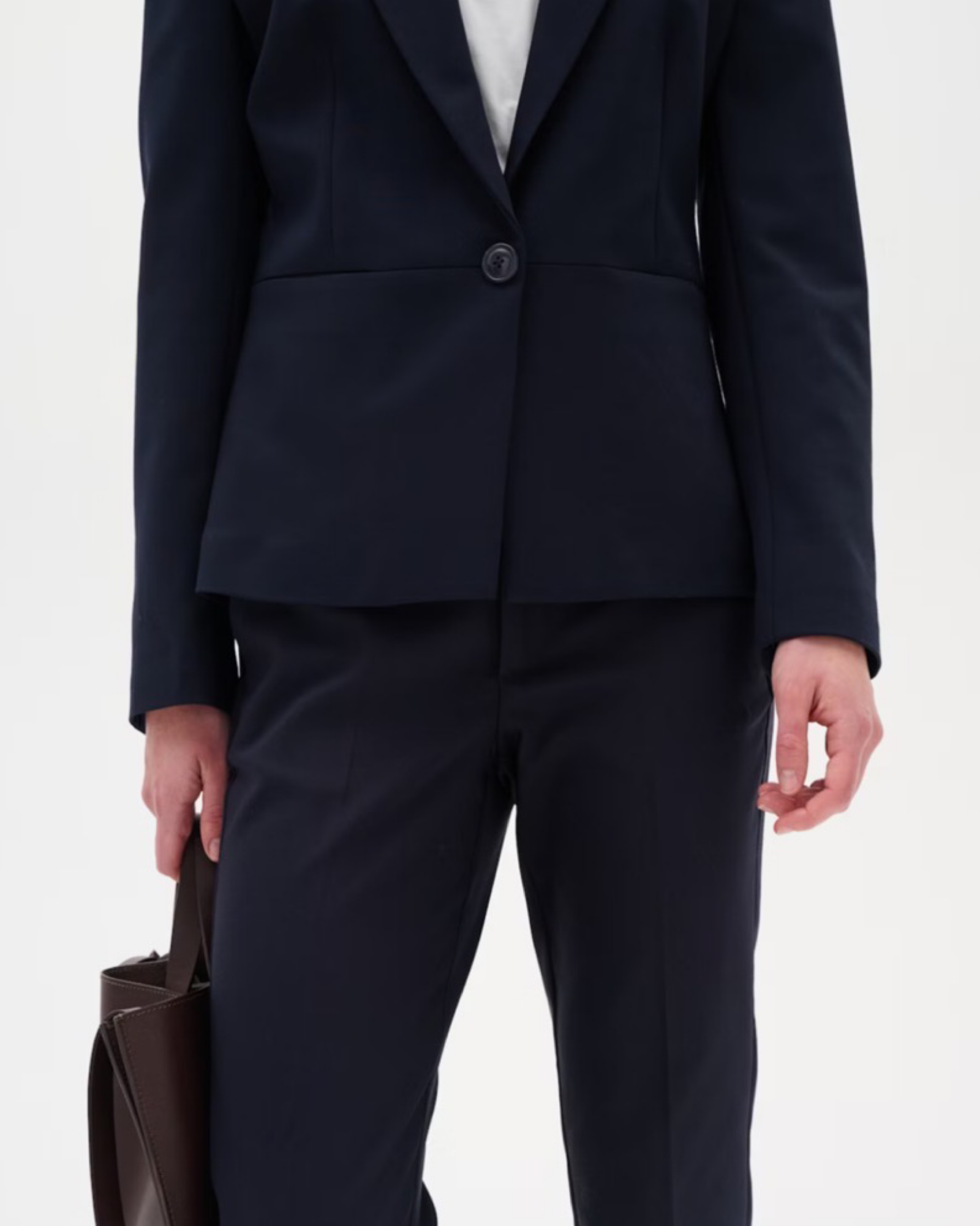 Black ankle-length pants with side pockets, back pockets, and a hook and zipper closure. The pants have a regular fit. The model is 172 cm tall and is wearing size S / 36.