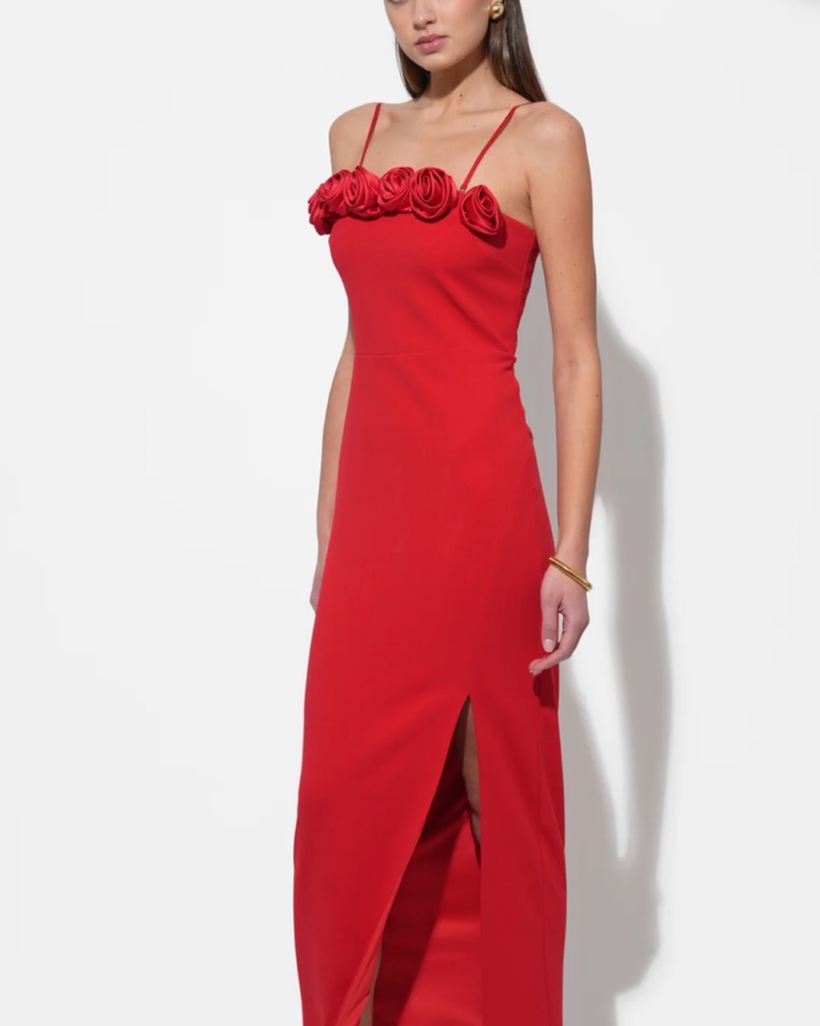 SOLANA ROSETTE STRETCH REMOVABLE STRAPS MIDI DRESS BY ADELYN RAE