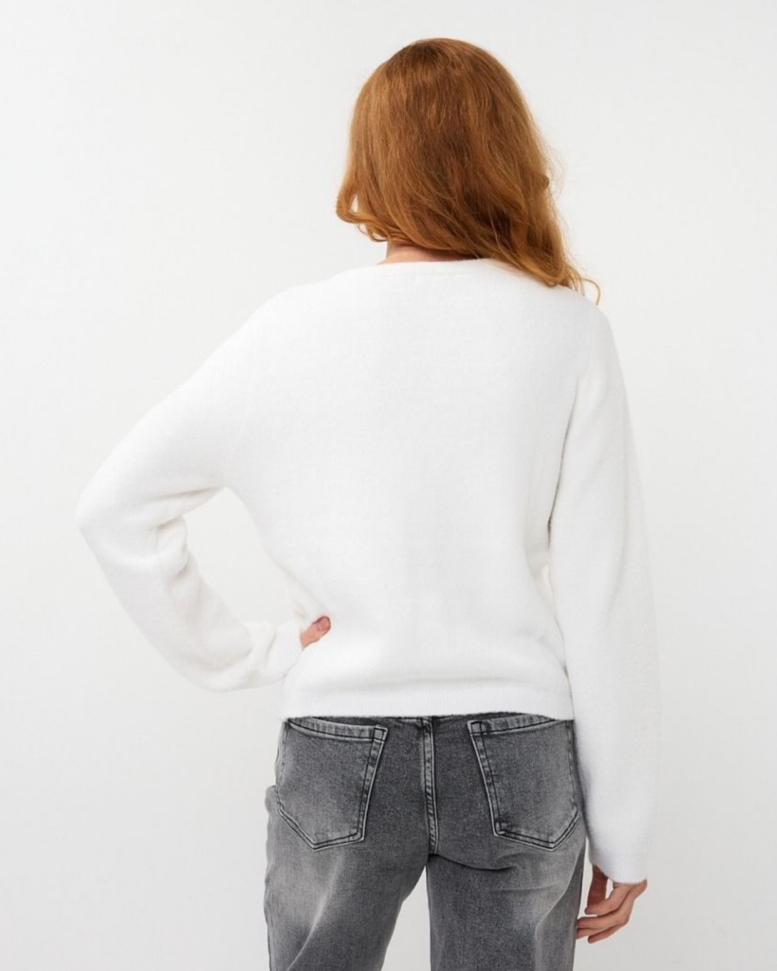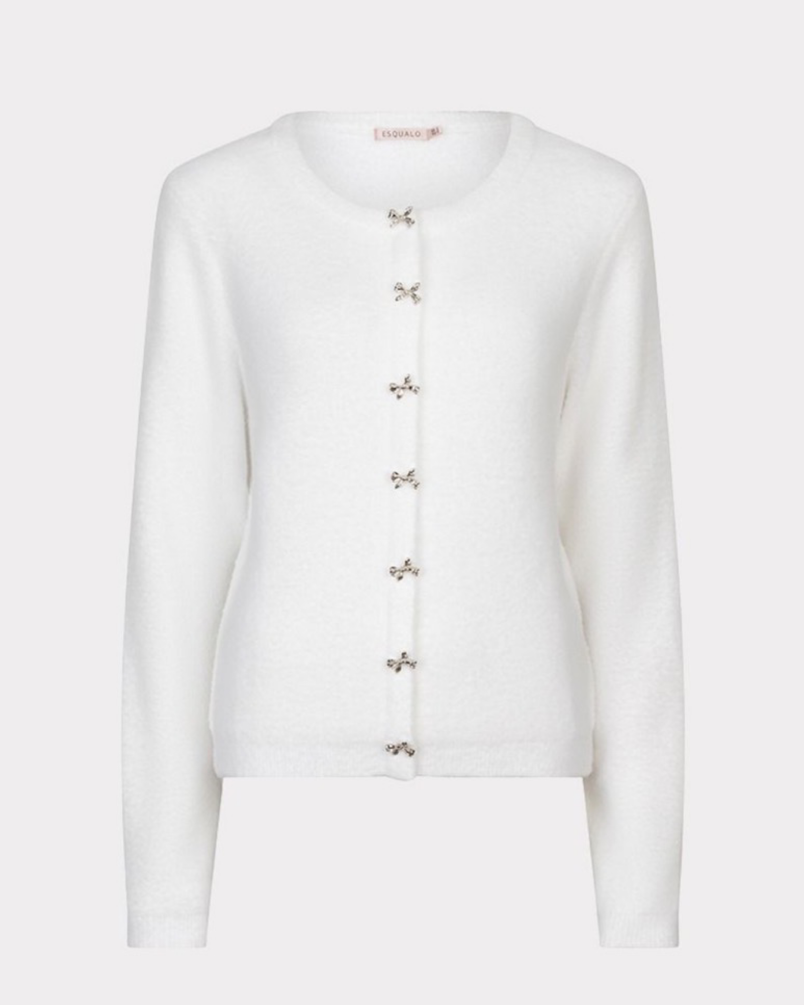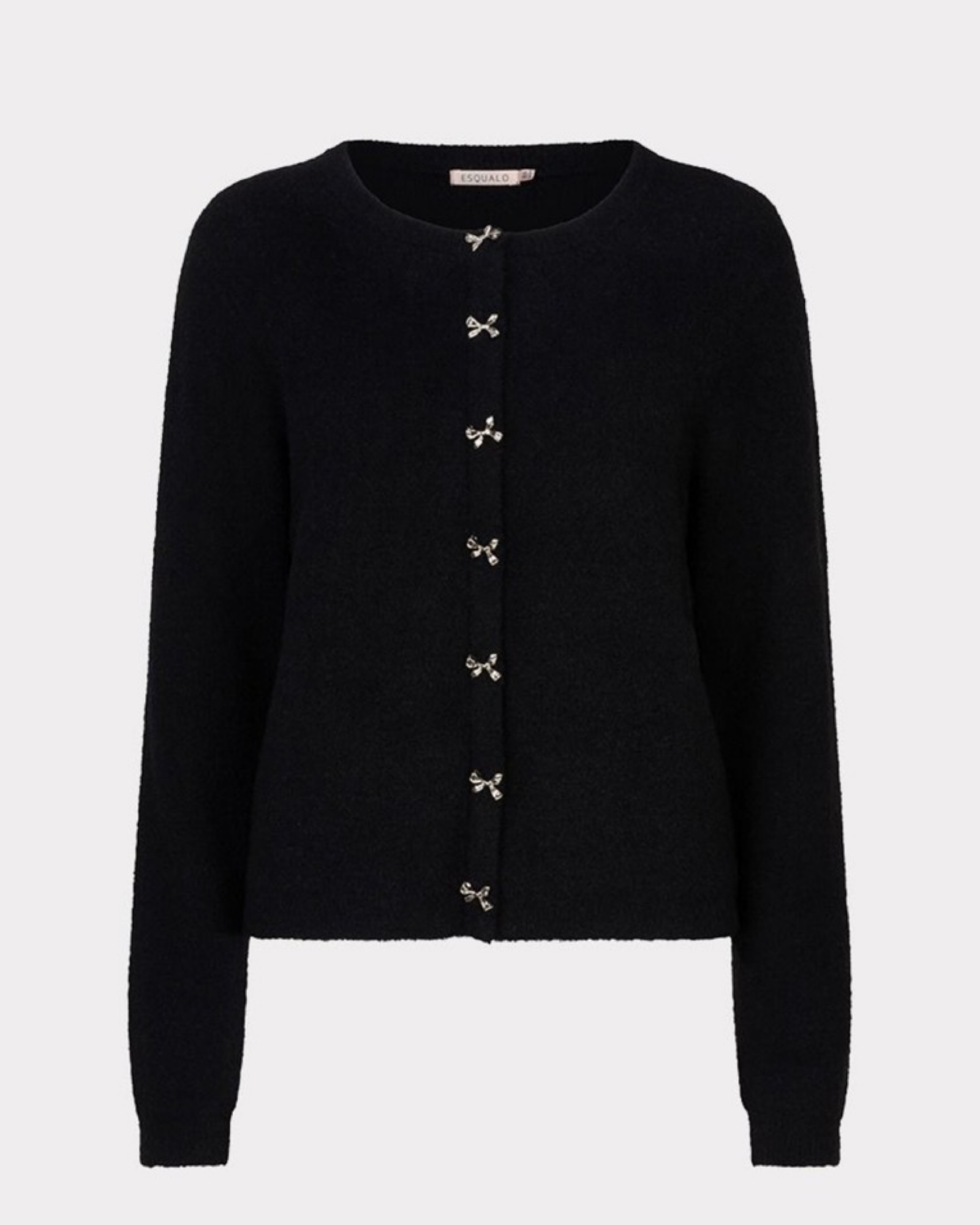 Soft cardigan with cute bow buttons. Comfortable and elegant!